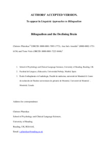 Pliatsikas, C. ORCID: https://orcid.org/0000-0001-7093-1773, Ansaldo, A. I. and Voits, T. (2021) Bilingualism and the declining brain. Linguistic Approaches to Bilingualism, 11 (4). pp. 453-458. ISSN 1879-9272 doi: 10.1075/lab.00031.int