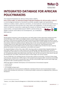 The Integrated Database for African Policymakers (IDAPs; http://www.walker.ac.uk/projects/idaps-integrated-database-for-african-policy-makers/), is a technological initiative to intended to provide valuable insight and quantitative evidence to policy makers, planners and doers, at international, national and local levels to inform scenario planning and support investment interventions for early action and adaptation. It also provides a rich source of data for researchers exploring the impacts of climate change in rural African communities, and potentially beyond. IDAPS is jointly led by the Walker Institute and Evidence for Development, our embedded NGO partner.
