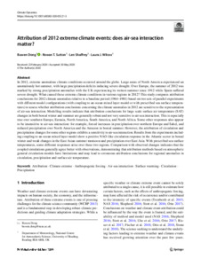 In 2012, extreme anomalous climate conditions occurred around the globe. Large areas of North America experienced an anomalously hot summer, with large precipitation deficits inducing severe drought. Over Europe, the summer of 2012 was marked by strong precipitation anomalies with the UK experiencing its wettest summer since 1912 while Spain suffered severe drought. What caused these extreme climate conditions in various regions in 2012? This study compares attribution conclusions for 2012 climate anomalies relative to a baseline period (1964–1981) based on two sets of parallel experiments with different model configurations (with coupling to an ocean mixed layer model or with prescribed sea surface temperatures) to assess whether attribution conclusions concerning the climate anomalies in 2012 are sensitive to the representation of air-sea interaction. Modelling results indicate that attribution conclusions for large scale surface air temperature (SAT) changes in both boreal winter and summer are generally robust and not very sensitive to air-sea interaction. This is especially true over southern Europe, Eurasia, North America, South America, and North Africa. Some other responses also appear to be insensitive to air-sea interaction: for example, forced increases in precipitation over northern Europe and Sahel, and reduced precipitation over North America and the Amazon in boreal summer. However, the attribution of circulation and precipitation changes for some other regions exhibits a sensitivity to air-sea interaction. Results from the experiments including coupling to an ocean mixed layer model show a positive NAO-like circulation response in the Atlantic sector in boreal winter and weak changes in the East Asian summer monsoon and precipitation over East Asia. With prescribed sea surface temperatures, some different responses arise over these two regions. Comparison with observed changes indicates that the coupled simulations generally agree better with observations, demonstrating that attribution methods based on atmospheric general circulation models have limitations and may lead to erroneous attribution conclusions for regional anomalies in circulation, precipitation and surface air temperature.