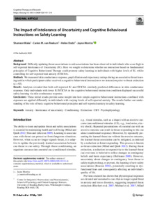 The impact of intolerance of uncertainty and cognitive behavioural instructions on safety learning.