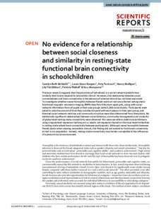 No evidence for a relationship between social closeness and similarity in resting-state functional brain connectivity in schoolchildren.
