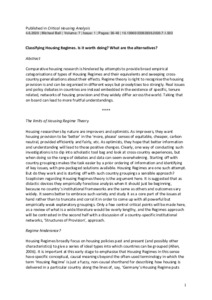 Ball, M. (2020) Classifying housing regimes. Is it worth doing? What are the alternatives? Critical Housing Analysis, 7 (1). pp. 36-48. ISSN 2336-2839 doi: 10.13060/23362839.2020.7.1.502