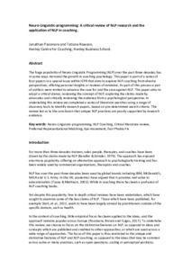 Neuro-linguistic-programming: a critical review of NLP research and the application of NLP in coaching.