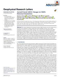 Menary, M. B., Robson, J. ORCID: https://orcid.org/0000-0002-3467-018X, Allan, R. ORCID: https://orcid.org/0000-0003-0264-9447, Booth, B. B. B., Cassou, C., Gastineau, G., Gregory, J. ORCID: https://orcid.org/0000-0003-1296-8644, Hodson, D. ORCID: https://orcid.org/0000-0001-7159-6700, Jones, C., Mignot, J., Ringer, M., Sutton, R. ORCID: https://orcid.org/0000-0001-8345-8583, Wilcox, L. ORCID: https://orcid.org/0000-0001-5691-1493 and Zhang, R. (2020) Aerosol-forced AMOC changes in CMIP6 historical simulations. Geophysical Research Letters. e2020GL088166. ISSN 0094-8276 doi: 10.1029/2020GL088166