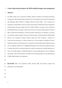 Hull, J. and Ewart, I. J. ORCID: https://orcid.org/0000-0002-9502-2338 (2020) Conservation data parameters for BIM enabled heritage asset management. Automation in Construction, 119. 103333. ISSN 0926-5805 doi: 10.1016/j.autcon.2020.103333