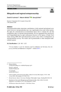 Audretsch, D. B., Belitski, M. and Eicher, G. (2020) Bilingualism and regional entrepreneurship. Annals of Regional Science, 65. pp. 787-806. ISSN 1432-0592 doi: 10.1007/s00168-020-01004-3