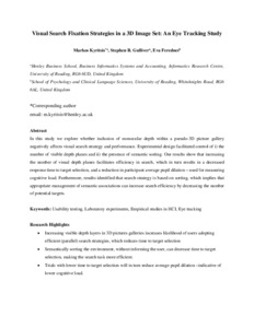 Kyritsis, M. ORCID: https://orcid.org/0000-0002-7151-1698, Gulliver, S. R. ORCID: https://orcid.org/0000-0002-4503-5448 and Feredoes, E. (2020) Visual search fixation strategies in a 3D image set: an eye tracking study. Interacting with Computers, 32 (3). pp. 246-256. ISSN 0953-5438 doi: 10.1093/iwc/iwaa018