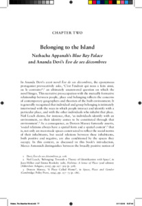 This chapter explores how, as depicted in Patel’s 2005 novel, the notion of belonging, in both its politico-legal and its emotional senses, is central to all aspects of the Chagos islanders’ long-silenced story – to their original expulsion; to their on-going legal battles for the right to return; and to their continued exclusion from contemporary Mauritian society. Drawing on Jones’s study of the ambivalent judicial term ‘belonger’, I argue that the Chagossians’ affective sense of belonging to their annexed homeland is also depicted as constituting the grounds for their legal rights as ‘belongers’ not to be deported and hence to be allowed to return. Intricately bound up with the foundation of the Mauritian nation, the Chagossians’ real-life story demonstrates, in the most brutal form possible, the inextricable links between notions of ‘place-belongingness’ and the politics of belonging.