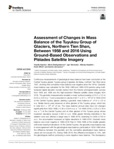 Barandun, M., Huss, M., Usubaliev, R., Azisov, E., Berthier, E., Kääb, A., et al. (2018). Multi-decadal mass balance series of three Kyrgyz glaciers inferred from modelling constrained with repeated snow line observations. Cryosphere 12, 1899–1919. doi:10.5194/tc-12-1899-2018.