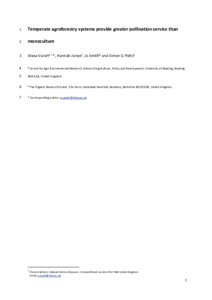 Temperate agroforestry systems provide greater pollination service than monoculture