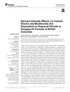 Harvest intensity effects on carbon stocks and biodiversity are dependent on regional climate in Douglas-fir forests of British Columbia