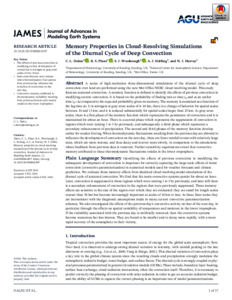 Daleu, C. L. ORCID: https://orcid.org/0000-0003-2075-4902, Plant, R. S. ORCID: https://orcid.org/0000-0001-8808-0022, Woolnough, S. J. ORCID: https://orcid.org/0000-0003-0500-8514, Stirling, A. J. and Harvey, N. J. ORCID: https://orcid.org/0000-0003-0973-5794 (2020) Memory properties in cloud--resolving simulations of the diurnal cycle of deep convection. Journal of Advances in Modeling Earth Systems, 12 (8). e2019MS001897. ISSN 1942-2466 doi: 10.1029/2019MS001897