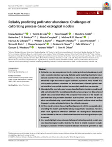 Gardner, E. ORCID: https://orcid.org/0000-0002-1669-7151, Breeze, T. D. ORCID: https://orcid.org/0000-0002-8929-8354, Clough, Y., Smith, H. G., Baldock, K. C. R., Campbell, A., Garratt, M. ORCID: https://orcid.org/0000-0002-0196-6013, Gillespie, M. A. K., Kunin, W. E., McKerchar, M., Memmott, J., Potts, S. G. ORCID: https://orcid.org/0000-0002-2045-980X, Senapathi, D. ORCID: https://orcid.org/0000-0002-8883-1583, Stone, G. N., Wackers, F., Westbury, D. B., Wilby, A. and Oliver, T. H. ORCID: https://orcid.org/0000-0002-4169-7313 (2020) Reliably predicting pollinator abundance: challenges of calibrating process-based ecological models. Methods in Ecology and Evolution, 11 (12). pp. 1673-1689. ISSN 2041-210X doi: 10.1111/2041-210X.13483