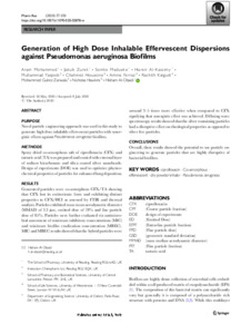 Generation of high dose inhalable effervescent dispersions against Pseudomonas aeruginosa biofilms.