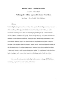 Relationship building is one of the most important aspects of leadership; however, it can pose ethical challenges. Though particularistic treatment of employees by leaders, i.e. leader favoritism, commonly occurs, it is conventionally regarded negatively as fairness norms require leaders to treat followers equally. In this conceptual study, we explore different views on leader favoritism based on different ethical principles. We develop an alternative to the conventional view and suggest that leader favoritism may not necessarily lead to negative outcomes when empathy-based favoritism is applied. In this vein, we recommend drawing on the ethical principles of a utilitarian approach by balancing particularism and universalism, which is also helpful to build organizational social capital. We contribute to leadership theory by developing an early concept of an integrative ethical approach to leader favoritism.
