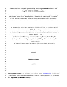 Torres-Alavez, A., Glazer, R., Giorgi, F., Coppola, E., Gao, X., Hodges, K. ORCID: https://orcid.org/0000-0003-0894-229X, Das, S., Ashfaq, M., Reale, M. and Sines, T. (2021) Future projections in tropical cyclone activity over multiple CORDEX domains from RegCM4 CORDEX-CORE simulations. Climate Dynamics, 57. pp. 1507-1531. ISSN 0930-7575 doi: 10.1007/s00382-021-05728-6