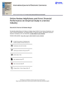 Online review helpfulness and firms’ financial performance: an empirical study in a service industry.