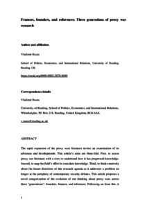 The rapid expansion of the proxy wars literature invites an examination of its advances and developments. This article’s aims are three-fold. First, to assess proxy war literature with a view to understand how it has progressed knowledge. Second, to map the field’s effort to cumulate knowledge. Third, to think creatively about the future directions of this research agenda as it addresses a problem no longer at the periphery of contemporary security debates. This article proposes a novel categorization of the evolution of our thinking about proxy wars across three "generations": founders, framers, and reformers. Following on from this, it provides an assessment of the literature’s assumptions in order to show what remains, or not, under-studied. In doing so, it makes a case for a historiography of the idea of "proxy war," and one for embedding strategy in analyses of wars by proxy.