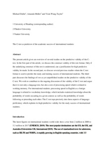 The present article gives an overview of several studies on the predictive validity of the C-test. In the first part of the article, we discuss the construct validity of this test format. Only if the underlying construct of this test is understood, can a justification for high predictive validity be made. In the second part, we discuss several previous studies where the C-test format is used to predict the study and training success of international students. The third part discusses the findings of two as yet unpublished studies on the predictive validity of the C-test. We wish to contribute to the ongoing discussion of the validity of the C-test and argue that it is not only a language test, but also a test of processing speed which is related to working memory. For international students, processing speed in English as a foreign language is related to vocabulary knowledge, which includes statistical knowledge about the probability of words occurring in a given context as well as the probability of words following or preceding each other. The C-test taps precisely into these aspects of language proficiency which explains its high predictive validity for the study success of international students.