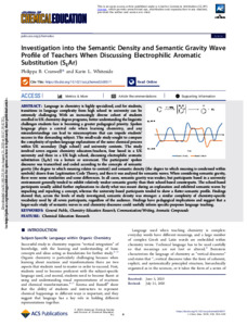Investigation into the semantic density and semantic gravity wave profile of teachers when discussing electrophilic aromatic substitution (SEAr).