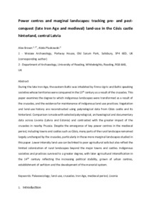 Power centres and marginal landscapes: Tracking pre- and post-conquest (late Iron Age and Medieval) land-use in the Cēsis Castle hinterland, Central Latvia.
