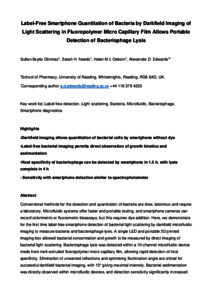 Dönmez, S. İ., Needs, S. H. ORCID: https://orcid.org/0000-0003-3407-9637, Osborn, H. M. I. ORCID: https://orcid.org/0000-0002-0683-0457 and Edwards, A. D. ORCID: https://orcid.org/0000-0003-2369-989X (2020) Label-free smartphone quantitation of bacteria by darkfield imaging of light scattering in fluoropolymer micro capillary film allows portable detection of bacteriophage lysis. Sensors and Actuators B: Chemical, 323. p. 128645. ISSN 0925-4005 doi: 10.1016/j.snb.2020.128645