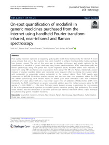 On-spot quantification of modafinil in generic medicines purchased from the internet using handheld Fourier transform-infrared, near-infrared and Raman spectroscopy.
