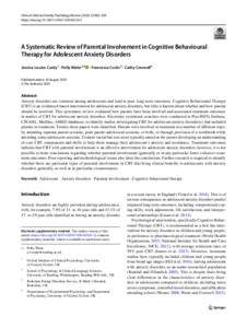 A systematic review of parental involvement in cognitive behavioural therapy for adolescent anxiety disorders.