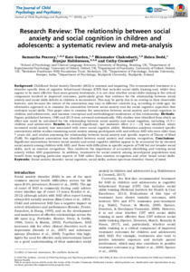 Research review: the relationship between social anxiety and social cognition in children and adolescents: a systematic review and meta‐analysis