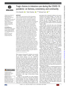 Newdick, C., Sheehan, M. and Dunn, M. (2020) Tragic choices in intensive care during the COVID-19 pandemic: on fairness, consistency and community. Journal of Medical Ethics, 46. pp. 646-651. ISSN 1473-4257 doi: 10.1136/medethics-2020-106487