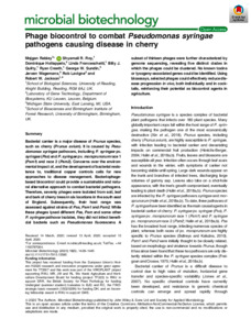 Rabiey, M. ORCID: https://orcid.org/0000-0001-8463-9087, Roy, S. R., Holtappels, D., Franceschetti, L., Quilty, B. J., Creeth, R., Sundin, G. W., Wagemans, J., Lavigne, R. and Jackson, R. W. (2020) Phage biocontrol to combat Pseudomonas syringae pathogens causing disease in cherry. Microbial Biotechnology, 13 (5). pp. 1428-1445. ISSN 1751-7915 doi: 10.1111/1751-7915.13585