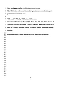 Mirid feeding preference as influenced by light and temperature mediated changes in plant nutrient concentration in cocoa.