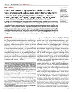 Direct and seasonal legacy effects of the 2018 heat wave and drought on European ecosystem productivity