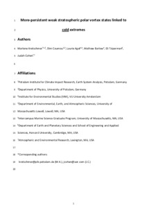 More-persistent weak stratospheric polar vortex states linked to cold extremes.