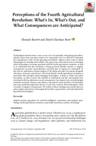 Barrett, H. and Rose, D. C. (2022) Perceptions of the fourth agricultural revolution: what’s in, what’s out, and what consequences are anticipated? Sociologia Ruralis, 62 (2). pp. 162-189. ISSN 1467-9523 doi: 10.1111/soru.12324