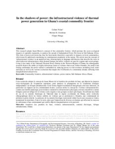In the shadows of power: the infrastructural violence of thermal power generation in Ghana's coastal commodity frontier.