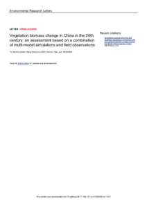 Vegetation biomass change in China in the 20th century: an assessment based on a combination of multi-model simulations and field observations.