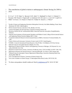 Lee, D. S., Fahey, D. W., Skowron, A., Allen, M. R., Burkhardt, U., Chen, Q., Doherty, S. J., Freeman, S., Forster, P. M., Fuglestvedt, J., Gettelman, A., De León, R. R., Lim, L. L., Lund, M. T., Millar, R. J., Owen, B., Penner, J. E., Pitari, G., Prather, M. J., Sausen, R. and Wilcox, L. J.