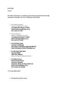 Stouraitis, V., Thomson, J., Tsanis, K., Kyritsis, M. ORCID: https://orcid.org/0000-0002-7151-1698 and Harris, M. H. M. (2020) The effect of autonomy in sustaining social entrepreneurial intention through management education: the cases of Malaysia and Scotland. In: BAM2020 Conference In The Cloud, 2-4 September 2020.
