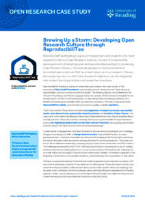 ReproducibiliTea Reading is a group of researchers and students who meet regularly to discuss Open Research practice. Our aim is to reduce the perceived costs of adopting open and reproducible practices by increasing Open Research literacy. We have developed our technical skills and promoted open practices that have been taken up in our research. We are also exploring ways in which Open Research objectives can be integrated into student learning activities and researcher incentives.