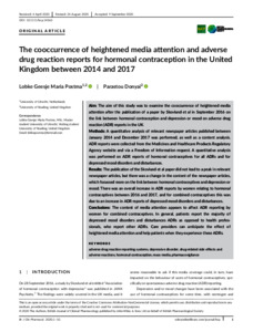 Postma, L. G. M. and Donyai, P. ORCID: https://orcid.org/0000-0001-5403-6170 (2021) The cooccurrence of heightened media attention and adverse drug reaction reports for hormonal contraception in the United Kingdom between 2014 and 2017. British Journal of Clinical Pharmacology, 87 (4). pp. 1768-1777. ISSN 0306-5251 doi: 10.1111/bcp.14563