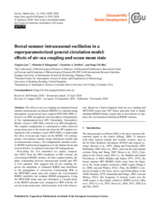 Gao, Y., Klingaman, N. P. ORCID: https://orcid.org/0000-0002-2927-9303, DeMott, C. A. and Hsu, P.-C. (2020) Boreal summer intraseasonal oscillation in a superparameterized general circulation model: effects of air–sea coupling and ocean mean state. Geoscientific Model Development, 13 (11). pp. 5191-5209. ISSN 1991-9603 doi: 10.5194/gmd-13-5191-2020