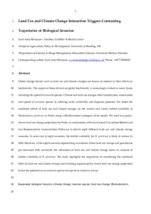 Land use and climate change interaction triggers contrasting trajectories of biological invasion.