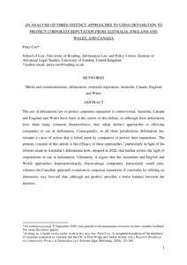 An analysis of three distinct approaches to using defamation to protect corporate reputation from Australia, England and Wales, and Canada