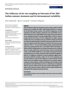 The influence of air‐sea coupling on forecasts of the 2016 Indian summer monsoon and its intraseasonal variability.