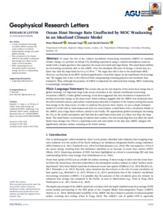 Ocean heat storage rate unaffected by MOC weakening in an idealized climate model.