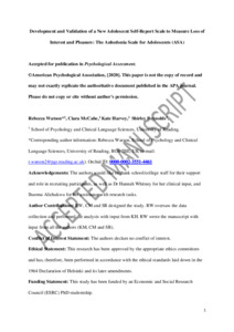 [thumbnail of Accepted Manuscript - Development  Validation of a New Adolescent Self-Report Scale to Measure Loss of Interest  Pleasure.pdf]