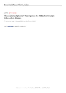 Observations of planetary heating since the 1980s from multiple independent datasets.