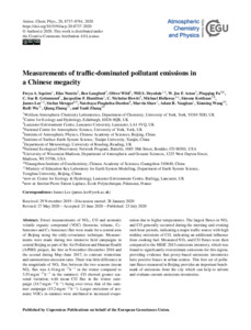 Squires, F. A. ORCID: https://orcid.org/0000-0002-3364-4617, Nemitz, E. ORCID: https://orcid.org/0000-0002-1765-6298, Langford, B., Wild, O. ORCID: https://orcid.org/0000-0002-6227-7035, Drysdale, W. S. ORCID: https://orcid.org/0000-0002-7114-7144, Acton, W. J. F., Fu, P. ORCID: https://orcid.org/0000-0001-6249-2280, Grimmond, C. S. B. ORCID: https://orcid.org/0000-0002-3166-9415, Hamilton, J. F., Hewitt, C. N. ORCID: https://orcid.org/0000-0001-7973-2666, Hollaway, M. ORCID: https://orcid.org/0000-0003-0386-2696, Kotthaus, S. ORCID: https://orcid.org/0000-0002-4051-0705, Lee, J. ORCID: https://orcid.org/0000-0001-5397-2872, Metzger, S. ORCID: https://orcid.org/0000-0002-4201-852X, Pingintha-Durden, N., Shaw, M., Vaughan, A. R., Wang, X. ORCID: https://orcid.org/0000-0002-1982-0928, Wu, R., Zhang, Q. and Zhang, Y. ORCID: https://orcid.org/0000-0003-0614-2096 (2020) Measurements of traffic-dominated pollutant emissions in a Chinese megacity. Atmospheric Chemistry and Physics, 20 (14). pp. 8737-8761. ISSN 1680-7316 doi: 10.5194/acp-20-8737-2020