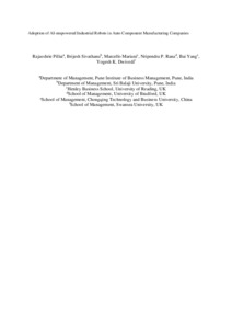Adoption of AI-empowered industrial robots in auto component manufacturing companies.